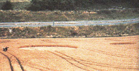 | In 1982 the second year in succession, for circles at Litchfield, a set of three were reported, again placed near the A34, one of the circles was apparently cutting across a hedgerow, forming a semi circle either side. The hedge was not effected by the event. |