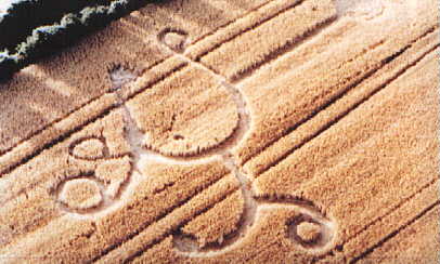This was nick named "The Octopus" because of it's curly pathways resembling tentacles. It was positioned on the flat of Telegraph Hill, and was missed by many people because of it's position within the field. It was one of seven formations to form in close proximity to each other at Cheesefoot Head. Permission granted by George Wingfield to display the picture. |