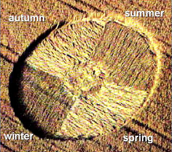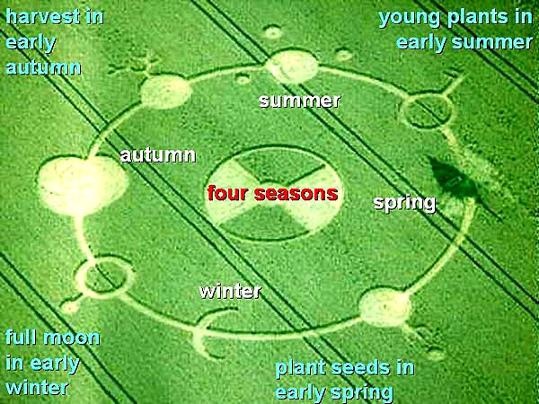Likewise at Winterbourne Stoke on August 12, 1989, a checkered circle appeared which matches the ancient symbol for "four seasons":