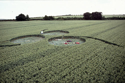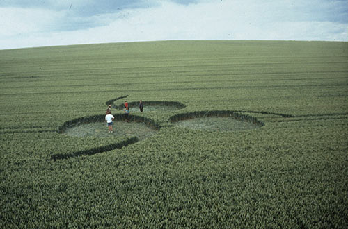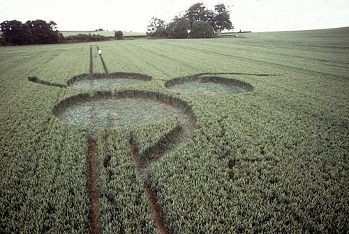 A group of scrolls appeared on the top of Lurkley Hill notorious for circles in the last five years. They were set in a triangle pattern with each tail facing away from the centre. You could either read them as three sixes, or three nines. Many people felt quite uneasy in them, like they were emanating a negative atmosphere. I personally had a bad feeling about them. |