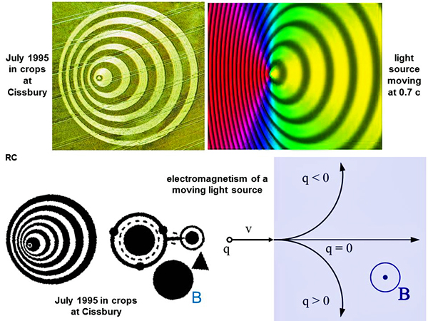 A formation appeared near the ancient hill fort of Cissbury Rings, it consisted of five rings around a small central circle with a inner ring. The central part was placed offset creating a condensed radius to the right, if you viewed from directly above. It was very large, over 250ft in diameter, but was lightly visited because of the farmer's opposition to strolling croppies. |