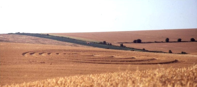 This is a photo of circles that I discovered in August 1995 at Park Brow on the South Downs north of Worthing - map ref:TQ 150090. The photo was taken from the bridleway to the east of the rings |