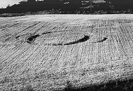 The farmer is certain that the circle, formed on Saturday night 20th July, is a hoax and it is indeed rather rough with broken stems and without nodal bending. A water line runs just above the circle and there are springs in the field.