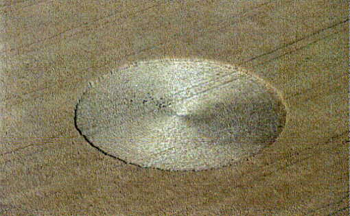 This formation came from John Sayer who did a grand tour of the south and midlands by plane. As soon as Mark and myself heard we took a fast trip down to Lutterworth. The first circle we came upon was situated alongside the A426. The Circle was located near a lay-by which gave us a chance to view it. The crop was Barley, and appeared to be in very good condition, so we assumed it hardly been visited. Through the binoculars the crop inside the single circle had an extremely neat rotation. This was the first single circle we had seen in the midlands this year, so we were somewhat satisfied as we left Lutterworth. Report by Nick Nicholson from The Circular Review.
