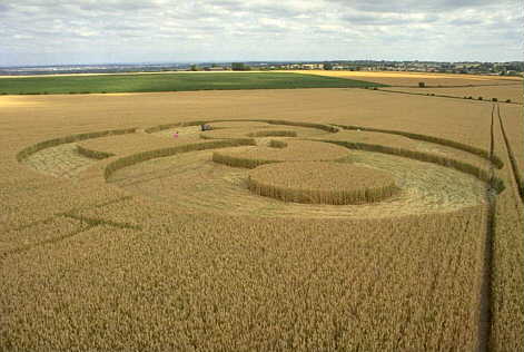 Below the hill fort called Liddington Castle near Chisledon, South of Swindon, this 120+ foot formation appeared in the same field and on the same night (August 1st?) as a third, quite unique, Julia Set Formation.
