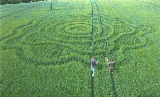 Visible from the minor road on your left just as you have left Goodworth Clatford and going towards Upper Clatford. It has a central circle followed by two concentric rings. There are then 3 more rings of uneven thickness that show a wavy pattern that is difficult to describe. I think it is a pentagonal design. I am sure someone will fly over it and take a photograph of it. The whole formation is about 80ft in diameter. The part of the formation I found most impressive is the heart A shaped signature 28 or grapeshot 29 just below it. I have never seen this before.