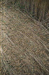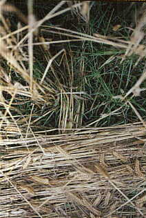 One strange anomaly was the protrusion of several stalks of Barley outside the very top of the circle, into and underneath all the other stalks sweeping around.