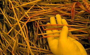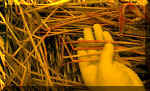 Photo A is the mother of all infra red photos. With thanks to Patrick Harris for the generous loan of his hand, it clearly shows an abnormal display of heat being generated along the stem of the wheat, especially around the bent nodes. This was taken at Windmill Hill 1 day after `touchdown'. A week later, it may be of interest to note, the infra red levels in the genuine formations are noticeably lower.