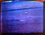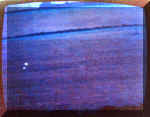 Click on thumbnails to enlarge IMPRESSIONS OF THE OLIVER'S CASTLE VIDEODESCRIPTION OF THE VIDEO The following is based upon a number of repeated viewings of the video on a large screen colour TV over two evenings, both at normal speed and frame-by-frame. The tape used was an unedited VHS copy of the 8mm camcorder original. The video is clearly identifiable as being shot from part way up the slope of the Oliver's Castle hill fort. The light activity and crop formation occur in a field adjacent to the bottom of the hill, almost directly beneath the camera position. Picture quality is somewhat grainy, low contrast, and looks consistent with what would be produced by a relatively unsophisticated camcorder operating in dim lighting conditions. Colour rendition is poor and the image has a noticeable blue/magenta colour cast. However the quality is good enough for the appearance of the formation, the accompanying lights and the surrounding landmarks to be clearly visible. At the beginning of the tape, prior to the main footage there is a short 2-3 second shot showing a fast zoom out from the field where the formation will subsequently appear. At this point the field is empty and there are no lights visible. At the bottom of the frame, tall grass on the hillside directly in front of the camera can be seen waving about in the wind. In this and the following footage constant slight shaking of the picture is evident The tape then cuts directly to the footage showing the appearance of the crop formation. In total this is just over 18 seconds in length. The shot starts with the camera zoomed closer into the field, with the area where the formation will appear filling the width of the screen. This camera position and zoom setting remains constant throughout the whole shot. Colour and lighting levels appear identical with the previous shot. The waving heads of the grass in the foreground can still be seen at the bottom of the frame. This, along with the camera shake, would appear to substantiate that this is real time footage. At the start of this shot two white lights are visible in the lower right quadrant of the screen travelling from right to left. Simultaneously a third light rises from behind a line of trees on the other side of the next field back. At this point the main field is still empty apart from a barely discernible dark marking positioned approximately in what will be the centre of the formation. The first two lights perform a clockwise loop in line astern around the perimeter of the formation, and as they do so the central circle starts to appear, followed by the six large surrounding circles. The circles appear to expand radically from the centre - there is no discernible rotational motion. The central circle takes longer to appear than the surrounding ones, so that they all reach their final size approximately simultaneously. The connecting pathways then extend outwards from the central circle to the satellites. At this point the voice of the cameraman can be heard on the soundtrack exclaiming 'Oh, that's amazing." While this is going on, the third light flies to the left behind a tree, dips down through a hedge, and then flies diagonally across the next field towards the formation. At this point it is much fainter than the first two lights. As it approaches the hedge separating the two fields, the first two lights, which by now are in the top right quarter of the screen, perform a sudden 90 degree left turn, appear to pass through the hedge and head back towards the line of trees where the third light appeared, eventually disappearing across the top of the screen. The third light now pops up from behind the hedge and flies above the formation towards the right side of the field. It is now much brighter and as it passes over the formation a second, much fainter light splits off from it and follows closely behind. Both lights accelerate markedly as they near the edge of the screen. As this happens the smaller satellite circles appear around the edge of the formation. The third and fourth lights slow down and perform a U-turn which takes them momentarily off the right-hand edge of the screen. They return travelling right to left, the fourth light now almost as bright as the third. After performing a clockwise circuit of the formation, they shoot straight off the right side of the screen. After another second or two the camera stops recording. The tape then cuts to a brief close-up of the centre of the formation, which is much darker than the preceding footage, probably due to the limitations of the camera. This shot demonstrates that the camera was not at its maximum zoom setting during the previous sequence. The final shot viewed starts with a wide view of the hills to the right of Oliver's Castle. The camera then pans left back to the formation, ending in a view roughly the same as the first one on the tape, only now with the formation in place. This was all the footage that was viewed. I am not aware of whether there was anything else after this on the tape. POINTS IN FAVOUR- The fact that the image is constantly moving around due to camera shake would make it extremely difficult to superimpose both the appearance of the formation and the lights onto the image while keeping them all convincingly in synch with the position of the background - The moving grass in the foreground substantiates that this is real time footage, not something pasted onto a still picture - The lighting conditions in the 'before' and 'after' shots of the field are very similar, suggesting that the time interval between them is quite short. - The video is reported to have been shown in the Barge Inn on the evening of the day it was filmed, leaving little time to produce a sophisticated fake if it was based on actual film of the formation. POINTS AGAINST- The cameraman seemingly 'knew' exactly which part of the field to point the camera at and the correct zoom setting to use in order to get a full-frame shot of 
