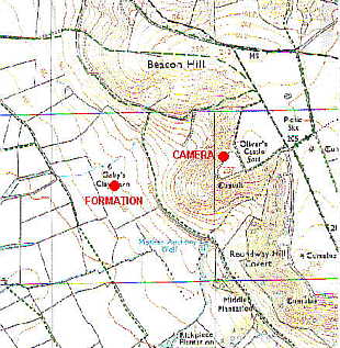Further observations on Oliver`s Castle by Steve Page What we are about to describe is the footage of the lights seen from Olivers Castle in connection with the Formation which appeared on the 11th of August 1996. The video of the event was shot in the early hours of the morning by a young student, who was camping on the top of Olivers Castle on a rather damp and dreary time of the month.