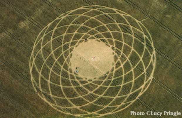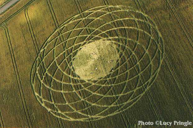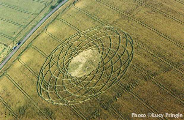 THE TORUS The formation is near to Woodborough Hill opposite the East field. The Formation can be seen from Knapp Hill. It is 300 feet in diameter with a large central circle with a series of (7) arcs going around it with two further layers of arcs forming a kind of Rose pattern. The Crop flows like water and Peter Sorensen says "It's gorgeous". The Crop Circle Connector would like to Thank Tim & Polly Carson for allowing access to this formation to the public. The Entry fee is only £1 or £1.50 per person and a car park is available in the next field along from the formation. To reach the formation please follow the 12th tramline in the field..