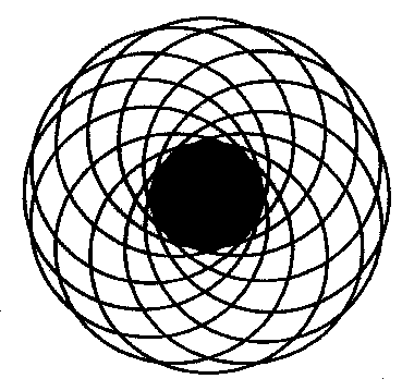 Central circle with 12 large interlocking rings around it similar to a 'spirograph' pattern. Approx 300' in diameter.