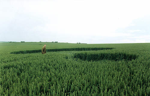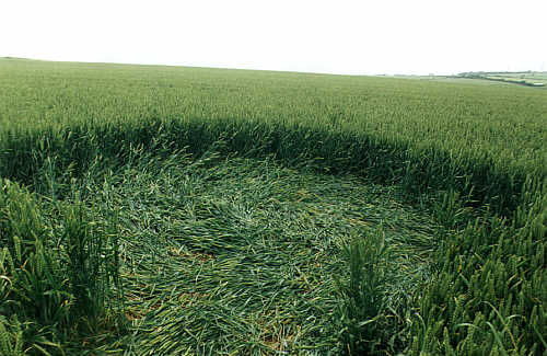 Two circles in wheat approx. 37 & 55 feet diameter in the middle of the field. The third circle in Barley approx. 30 feet in diameter. All circles are fairly old when reported on Sunday 15th June.