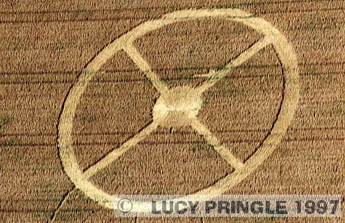 There is a formation on the A30 between Crewkerne and Yeovil, opposite the turning of to Haselbury Plucknett. It consists of a large circle with a cross like pattern in the centre of it and is surrounded by an even larger circle. It allegedly formed Yesterday.