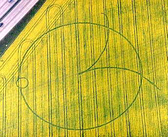 There has been a new crop circle discovered in oil seed rape at Littlebury Green in Essex. First reported to me this morning by Ron Hill and confirmed this afternoon by Russell Stannard, it is a cardioid shape and is under power lines, just visible from the M11 motorway. We thank Paul Vigay for the photos of the Littlebury Green/Essex 'cardioid', now up on his site at: I.R.C.U.P. 1997 UK Crop Circles. |