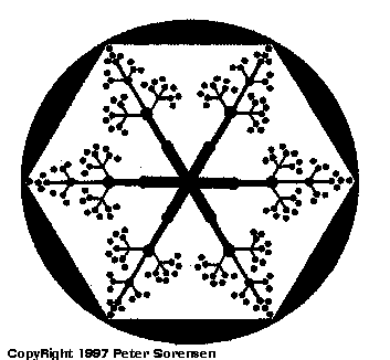 The Formation is a hexagon shape, with a small circle in the middle with six arms pointing towards each apex of the hexagon. On the end of each arm there are many many small circles. The formation is in barley and is approx. 500 feet.The formation was discovered on Monday 9th June by a local.