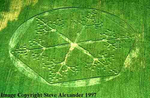 Diameter c.400. Composed of a total of 204 circles (12 * c. 16 feet, rest c.5 feet). Same field as the 1996 Spiral formation.