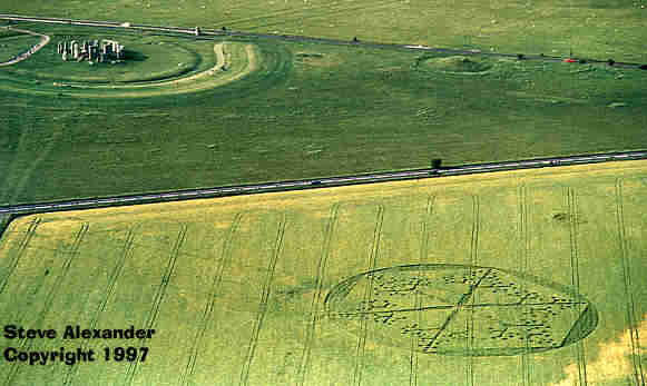 Perhaps two days old when discovered 10th June, this 400 footer is in the same field South of Stonehenge as the first Julia Set (in 1996). With 194 circles, it ties last year's Triple Julia Set for the record number. The details are irregular, and the craftsmanship of the circles varies greatly. While impressively complex, the design lacks sophistication of finesse. It is not the work of a Picasso - let alone of ET`s or Angels!