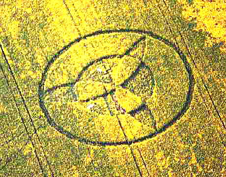 The second formation to appear in Essex Map Ref: TL 492 404. It's located in Striate, which is only half a mile from Littlebury Green to the north. Ring circle, with a Nuclear Symbol in the middle, about 100ft in diameter, in Rape Seed. It appeared Thursday/Friday morning the 2nd of May. |