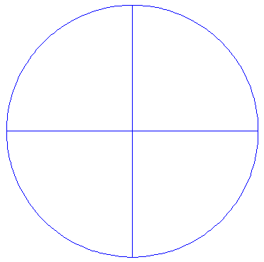 Draw a circle. Draw the horizontal and vertical centerlines. |