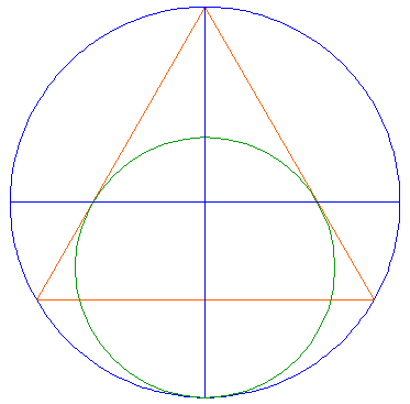 Construct a circle touching two sides of the first triangle and touching the outer circle, all at the inner sides. |