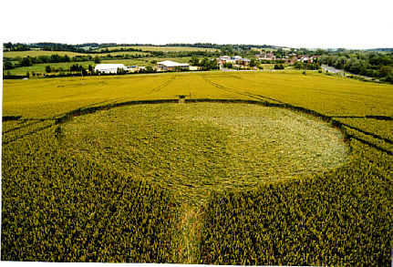Located between the towns of Newbury and Marlborough, is Hungerford, once thrown into the world spotlight back in 1987 with the terrible shooting incident. Thankfully Hungerford now has a more spiritual and mystical nature of the Crop Circles to grace its surrounding fields. This particular formation formed in the middle of the week, in a field which apparently according to the locals has seen many formations since the early nineties. This news came as a surprise, as normally the phenomenon doesn't come quite as close as this latest event. The field is situated on the outskirts of the town as you drive into Berkshire from Froxfield, positioned on an incline, the design contained 7 circles in total.