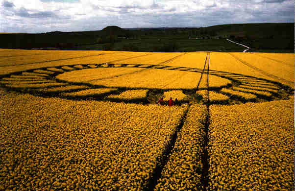 would snap with extreme While I was taking photographs of the formation , and got talking to a gentleman by the name of Tony Crerar. He is a enthusiastic photographer, and was taking time exposure photo's of the immediate area this morning (May 4th) of the moon set, and Sun Rise. He spent most of the night monitoring the area, and did not notice any strange lights, or cars in the vicinity. There was a time window though between 12-2.30am in the morning, when someone or something could have created this formation, any other time and Tony would have noticed. So this design seems to be connected with the Beltane Festival which is on the evening of the 6th May, and sunrise of the 7th. This is normally based on the Bronze Age calendar, which works on a 16th month principle. Report by Stuart Dike. The Beltane Fiery Wheel formation at Silbury Hill. by Tony Crerar |