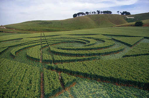 Image Russell Stannard Copyright 1999 The photograph was taken on the afternoon the formation appeared. The seed heads did not look particularly dehydrated then. |