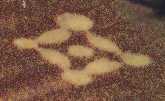 FORMATION (3): Positioned in a dip on the far side of the field, this was an unusual interlocking array of 4 circles and 4 ovals surrounding a small central circle