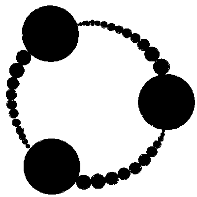 week old, consists of three large circles linked by arcs of smaller circles (11 in 2 of them, and
