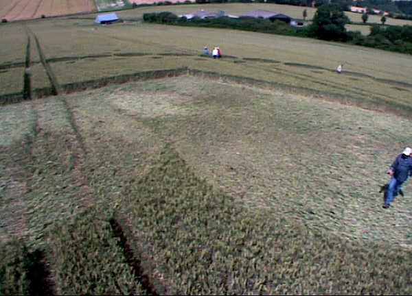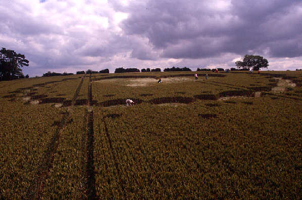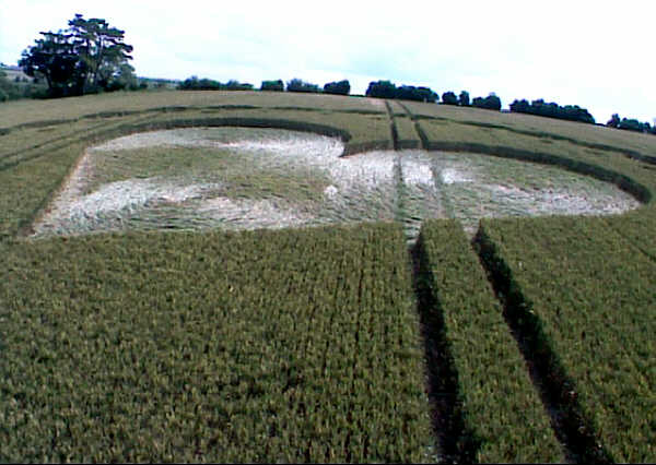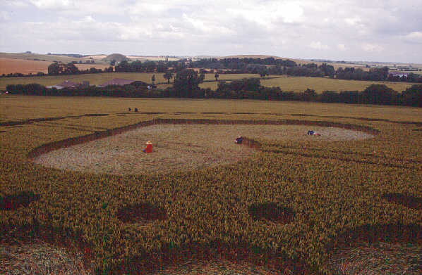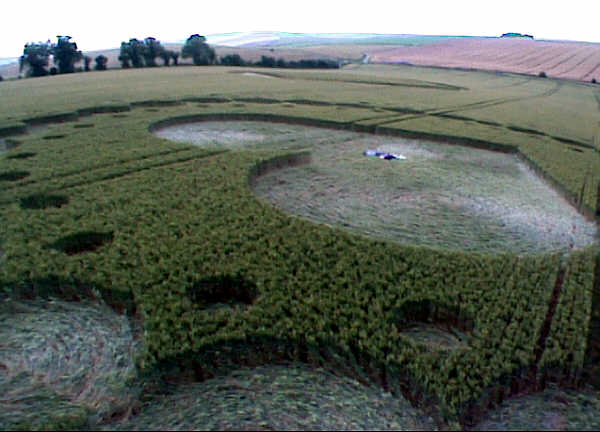 Well, as I drove out to Wiltshire, I wanted so much to stumble across a new formation, it was certainly in the air, so to speak. You tend to have a sixth sense when it comes to crop circles. The air was still and warm on the night this formation formed. So the chances were high, as I arrived in the Avebury area. As I drove past Silbury Hill, I looked across to the grid formation at East Kennett, and said, "Come on Circlemakers, were have you put it" when I suddenly spotted what looked like a new formation. On first glance, it appeared as if the grid had been added to, perhaps for the better? But it become evident, that amazingly a second formation had formed next to the grid. This was becoming an extraordinary season I felt, as I once again drove towards the field.