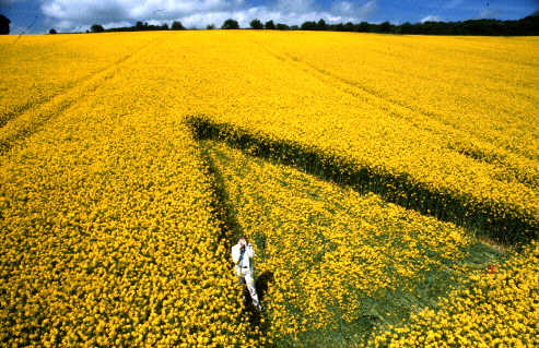 The fields, which lay along the left and right hand side of the road, which leads towards Lockeridge, coming from Alton Barnes, are watched frequently for any activity. Its very rarely we have a situation were a formation is missed. Well, in 2000 this was the case, but understandably so. The field in question has seen a number of circles down through the years, but when the field is grown with Oil Seed Rape, it makes life very difficult for us croppies! The height of the crop, combined with the size of the formation meant its appearance date (maybe) was a few days before it was spotted, but that’s an approximation. It was an optical illusion, as its very acute angle, could have been seen as just mere tramlines.