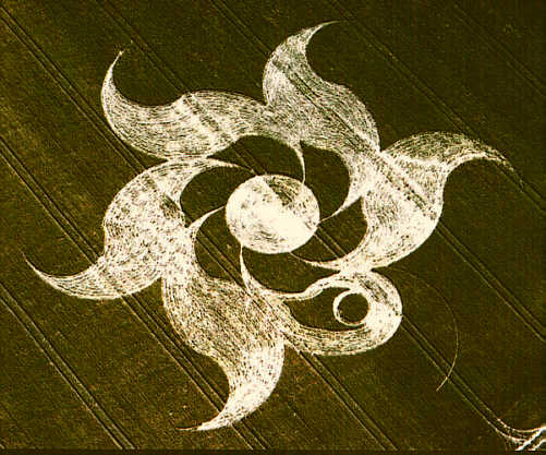 The past 12 days, has seen what I would quantify as a transformation in the crop circle season. The ever more complex designs that we are so use to seeing year upon year, have been brought back to a earlier time, when I was a fresh researcher to the phenomenon. The new formation at Golden Ball hill is the latest design with a rotational spinning effect, which is so important for sheer movement from an aerial, and to some degree on the ground.