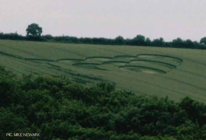 Image Mark Haywood Copyright 2000 Driving to the East Midlands Centre for Crop Circle Studies meeting I discovered this formation on the A427 between Market Harborough and Dingley. The East Midlands CCCS was already going to visit 4 formations after the meeting, I just increased the tally by one.