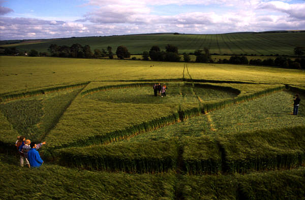 Once again Silbury Hill has been the venue for crop circle activity of the highest quality. This time we get two formations in the same field on the same night. Both of these works are situated in a field of barley that runs parallel with the busy A4 between the Wagon & Horses pub and Silbury Hill.