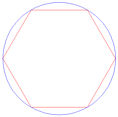 | 3. |  | Centered at each of the corners of the hexagon, construct circles (6 in total) each passing through two other corners that form together with its center an equilateral triangle. Remove all parts of circles outside the hexagon. |