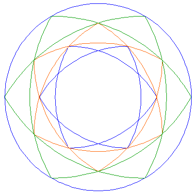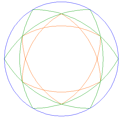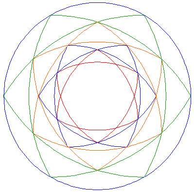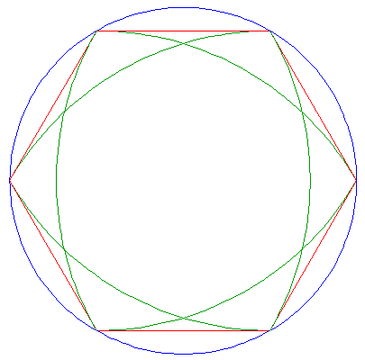 | 4. |  | The intersections of the previous circles form a new, smaller hexagon. For each of the corner points of this hexagon, repeat the construction of step 3, removing everything outside the smaller hexagon. |