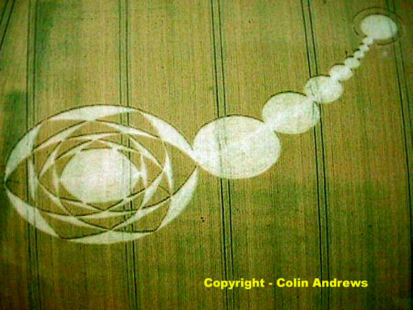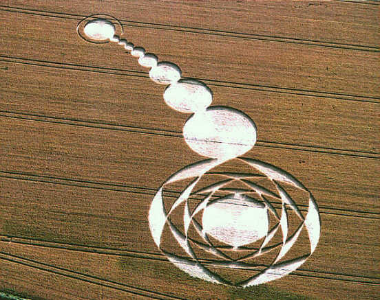A major event of "Wiltshire quality" -this "thought bubble" type formation appeared on the north side of the White Horse below Dragon Hill and was the 4th event in