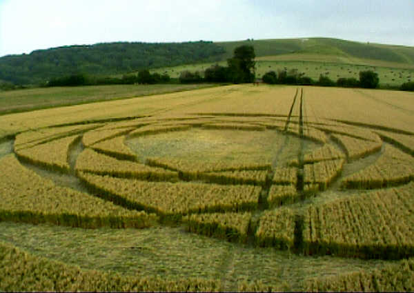 The White Horse at Uffington (or possibly dragon?) has been grazing out onto its plains for over two thousand years. Its dramatic slopes is a fitting location for the Circlemakers, and indeed the location itself has been a backdrop to a few designs since the mid nineties.