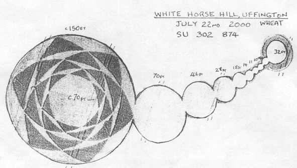 larger tail circle surrounded by a thin ring. All circles were just touching. Approximate diameters were 70ft, 46ft, 28ft, 18ft, 14ft, lift, 10ft, 10ft, 32ft. The circles were
