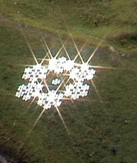 LAND ART at Adams Grave, nr Alton Barnes, Wiltshire. Spotted 28th July.