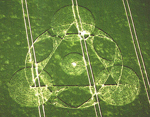 A new crop circle at Barbury Castle Wiltshire- Berranburgh field below RAF hospital. Best yet! appeared 26/27. This is the first major Crop Circle in Wiltshire and is over 150 feet in diameter. The crop is Barley which is recovering very quick and we hope to have an aerial shot within a day or two.