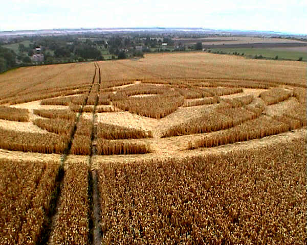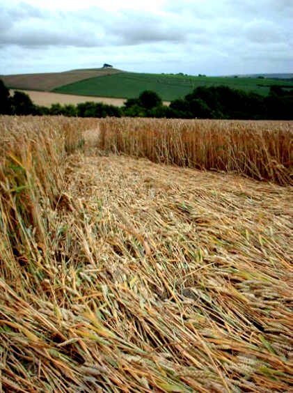 the centre (see photo) and some criss cross lay in parts of the formation. Also odd stems of standing crop in flattened areas. Report by Melanie Gambrill |