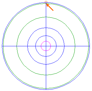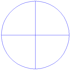 Draw a circle, draw its horizontal and vertical centerlines. |