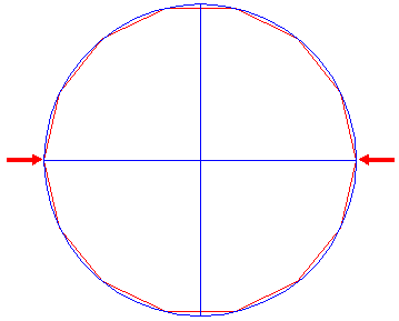 Construct the inscribed 14-sided regular polygon, with angular points at both ends of the horizontal centerline. |