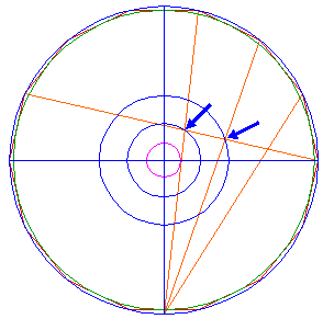 Construct two more circles concentric with circle 1, passing through intersections of the two "most vertical" diagonals and the "horizontal" one. |