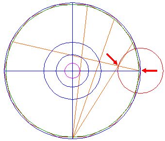 Construct a circle with the center at the end-point of the horizontal centerline on the right, passing through the intersection of the third "vertical" diagonal and the "horizontal" one. |