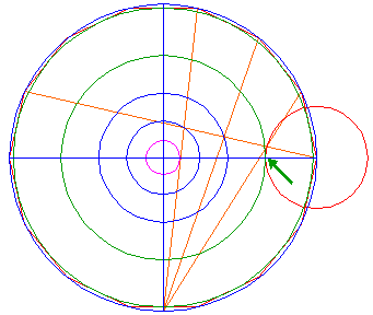 Construct a circle concentric with circle 1, tangent to the diagonal closest to the vertical centerline. |