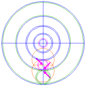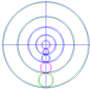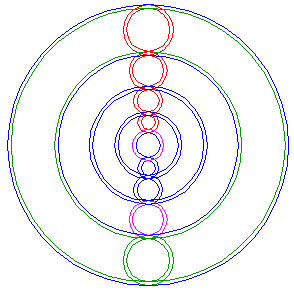 Construct, similar to circle 3, circles concentric with circle 1, tangent to the copied circles 10, at the lower sides. |
