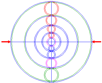 Copy all circles from steps 13, 15 and 16, at the same time mirroring relative to the horizontal centerline. |